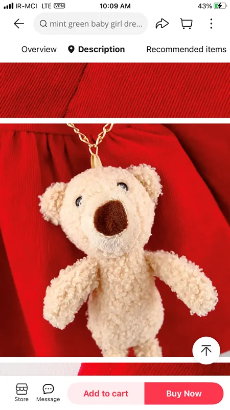 - پیراهن دخترانه مخمل کبریتی به همراه عروسک تدی