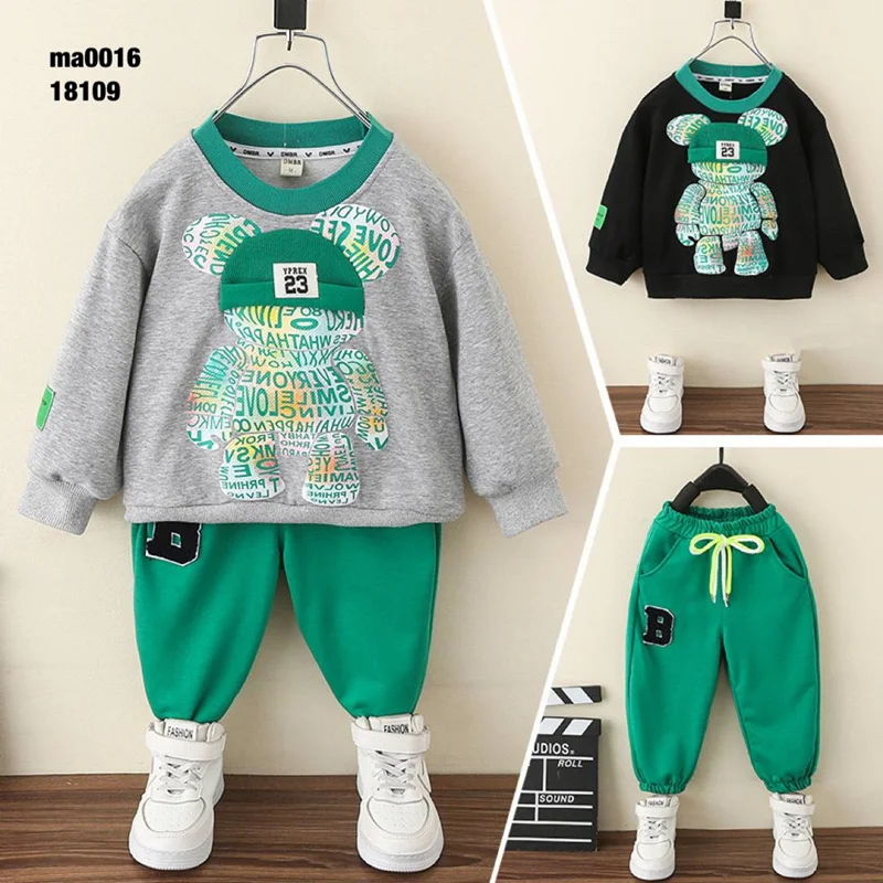 ست دو تیکه پسرانه وارداتی، سویشرت و شلوار ، پارچه دورس درجه یک ، کیفیت فوق العاده ، رنگ مشکی و طوسی ، رده سنی 2-9 سال ( جدول راهنمای سایز در پایین صفحه )